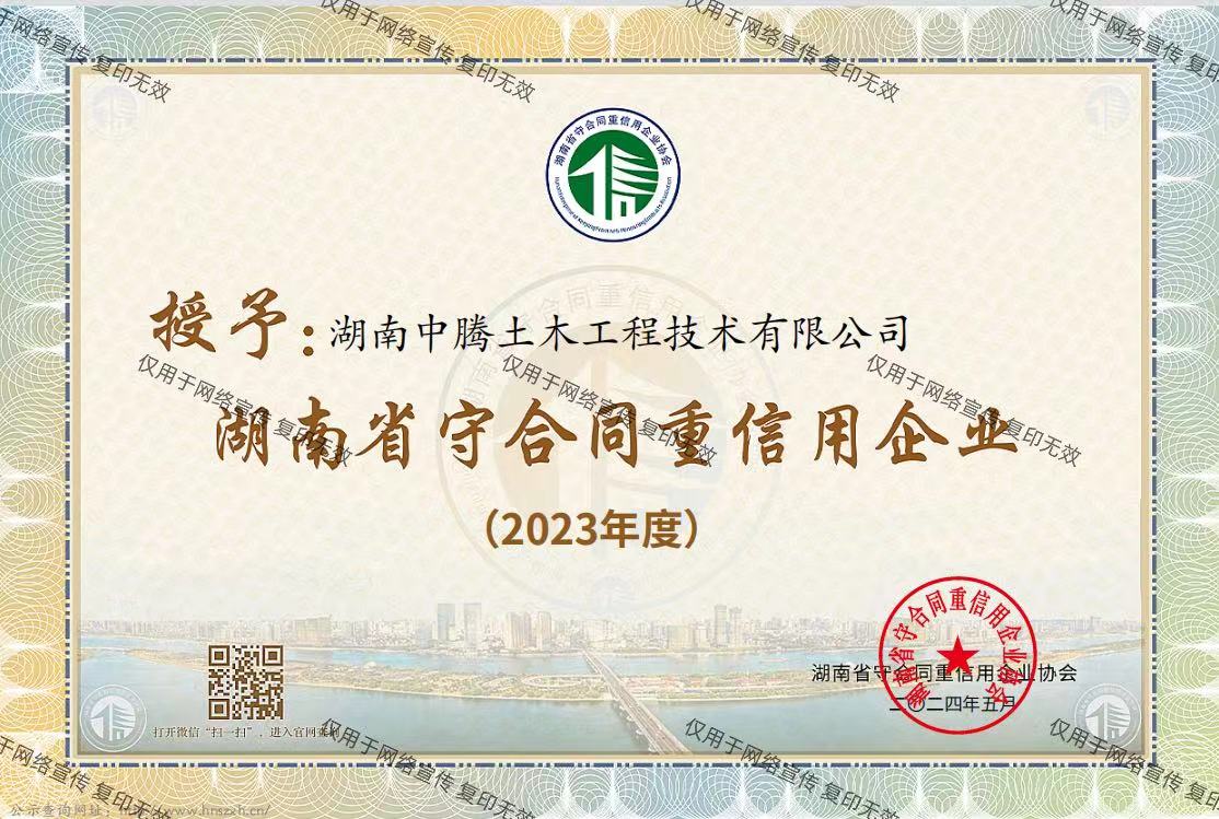 喜報!祝賀集團子公司中騰土木獲2023年度湖南省守合同重信用企業